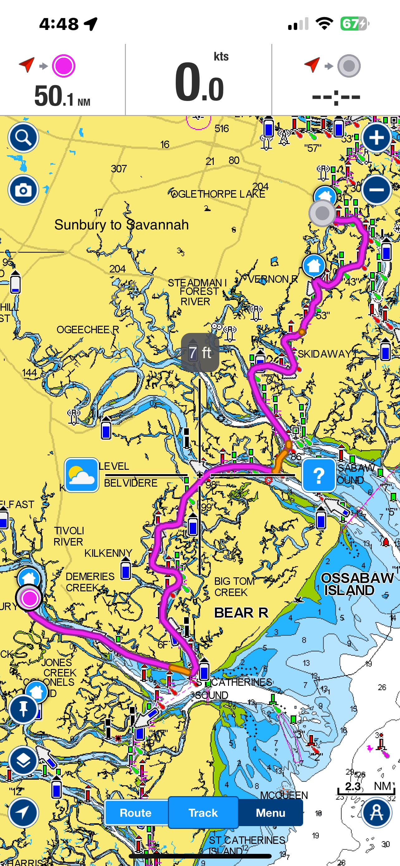 We had a great deal of company on the water today on our way to Savannah. Yet another beautiful travel day with little wind and sunny skies. We arrived at Thunderbolt Marina, just outside of Savannah a bit before 1p.m. There were several boaters here that we haven’t seen in a while - ”Faith”, “Dream Catcher” and “Mona Lisa”. Needless to say we had a fun time in Savannah.
