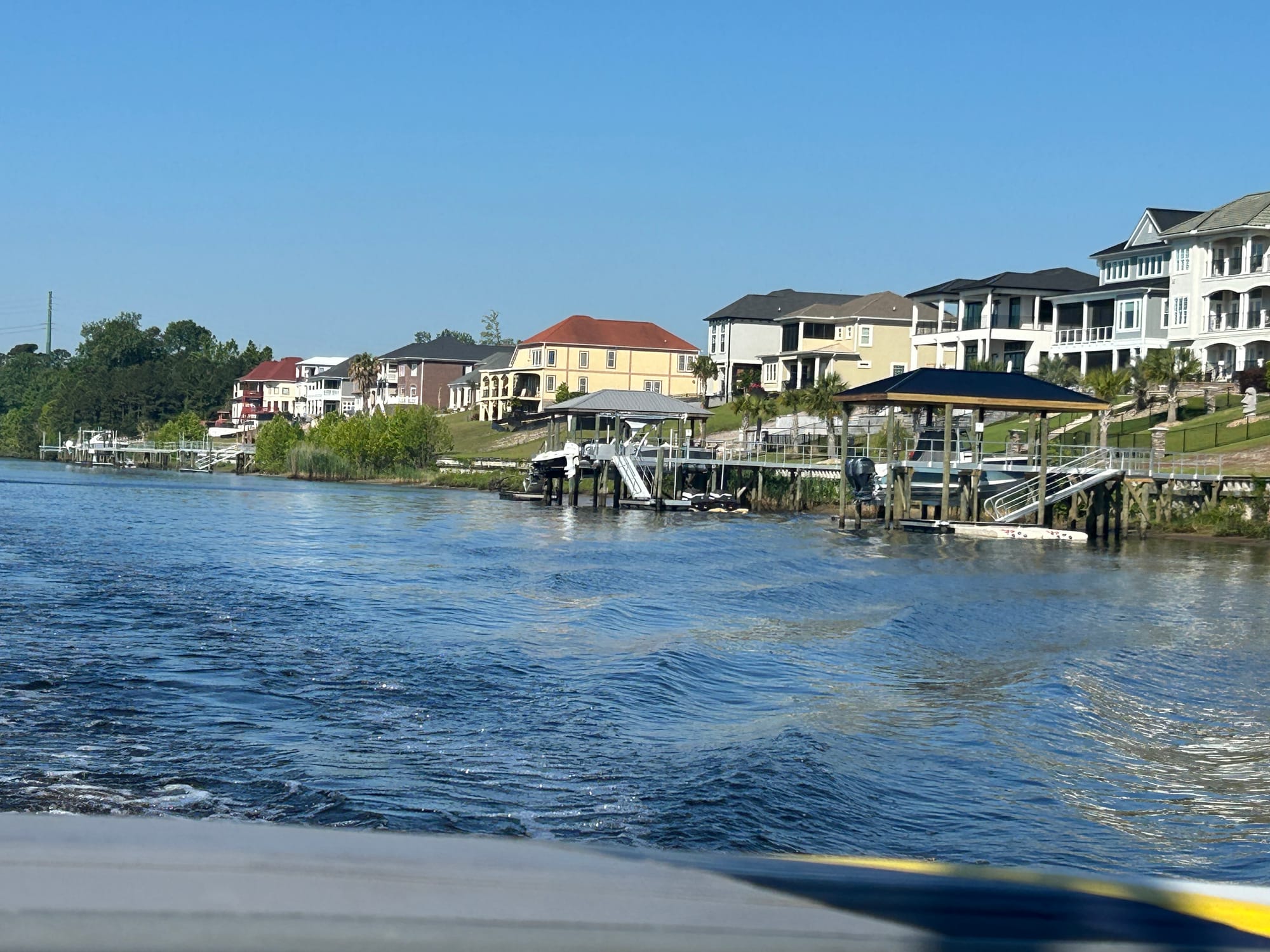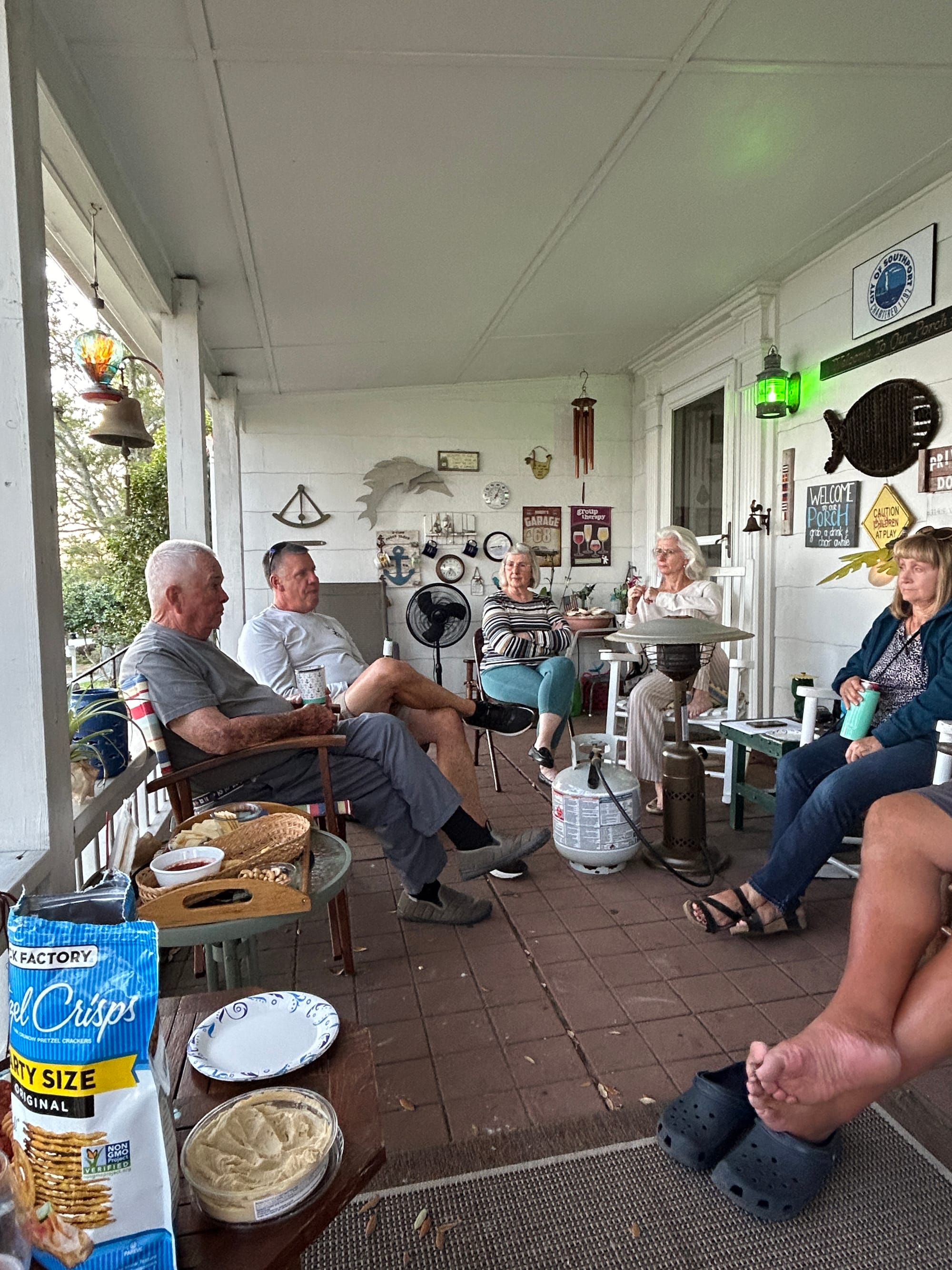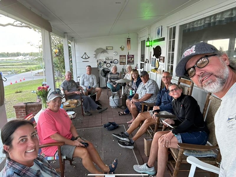 Unfortunately we had to bypass Myrtle Beach and headed to Southport. This is a pretty popular stop as Robert Creech and his wife Kay are infamous harbor hosts here. Although they are no longer “doing the loop” and have given up their boat they have a daily “porch time” when he invites all loopers staying in the area marinas to his porch for food, drink and conversation-including updates on the loop-weather, bridge closings, dredging etc. Robert met us at our boat while we were docking. As we had a long travel day we decided to divide and conquer. Dan began the daily maintenance on the boat and getting routes ready for the following day and I was ready to set off on my scooter to find the closest convenience store for a few items. Robert insisted that I take his car to wherever I wanted to shop and simply asked me to return it when we came to the porch. Quite a unique couple. We enjoyed their “looping magic” and their company as well as met a few new fellow loopers on the porch.