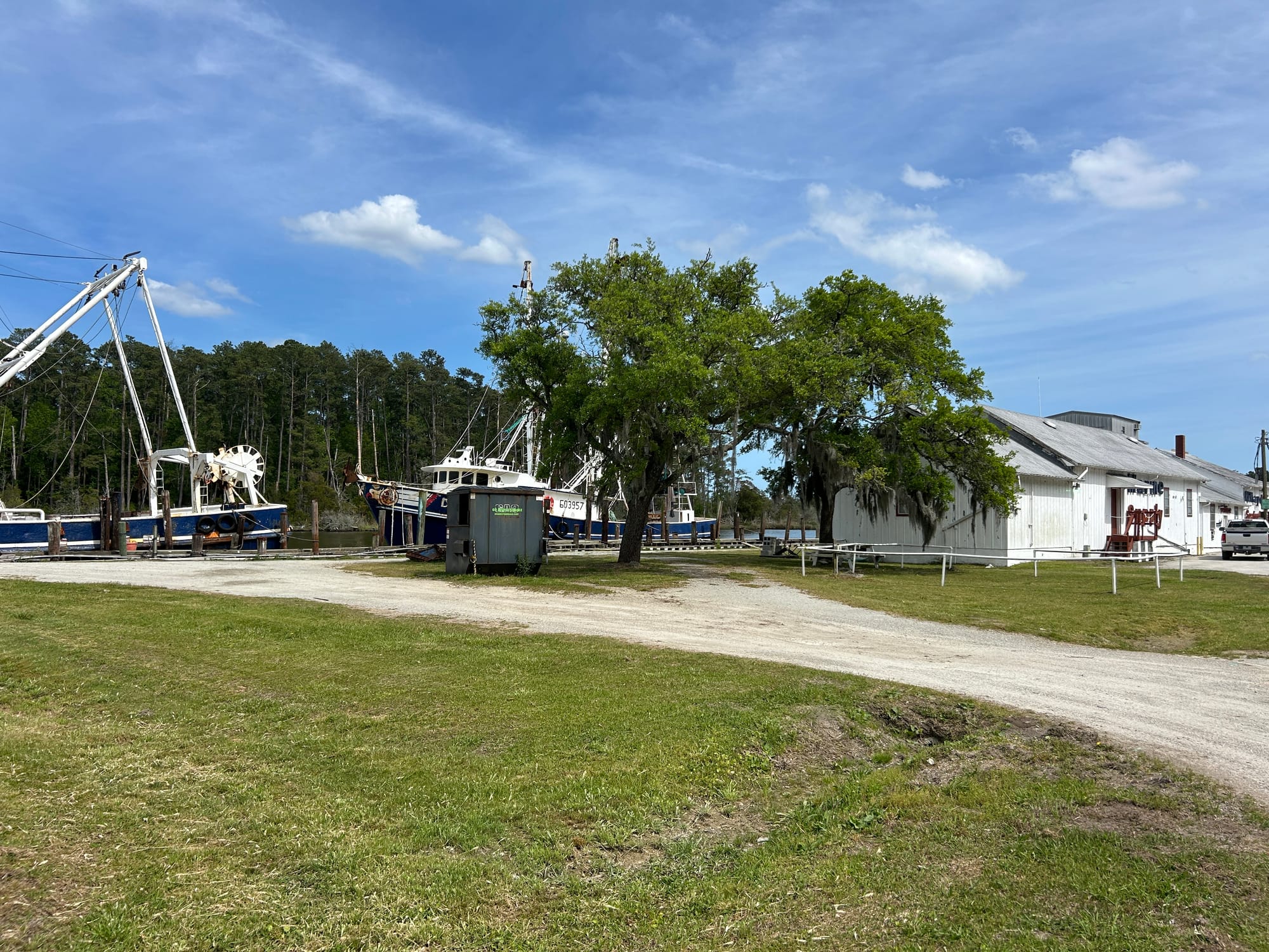 On Nick’s suggestion we stopped at RE Mayo fish company in Hobucken, NC, population 2,086 with a median home value of $107,000. I am thinking this could be a nice area to retire to if one wanted to be a “halfback”. Check out the link it is actually a trend in “these here parts!” 🤪. I guess it makes sense as this area is beginning to look a lot like New England. The weather year round is pleasant with only a few snowflakes every 3-5 years and never enough to shovel. Of course there are still alligators in some of the waters as well as hurricanes and torrential downpours to contend with.