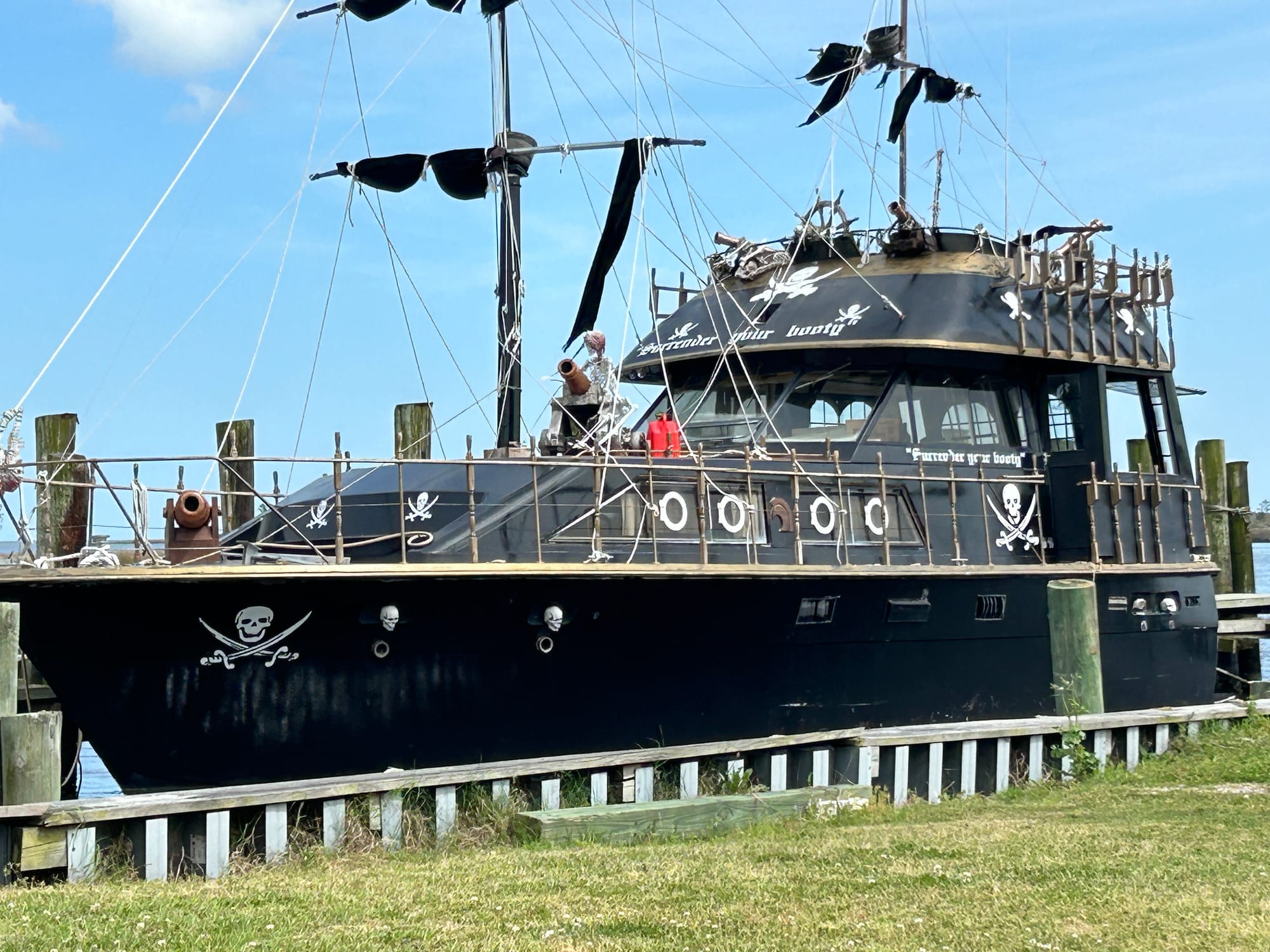 RE Mayo was one of the quietest stops we have had yet on the loop. Seems reasonable considering the population. This was very much a no frills stop. They barely answered the phone when we called and we were directed to tie up wherever we felt comfortable. There was a fish store of course, electricity, no water, but at 40 cents per foot, ($13) it was a steal. We also got to see the local sites including their pirate ship. Rumor has it from the marine patrol it was purchased by the owner during a drunken night and has not moved in the 2 years he has owned it.