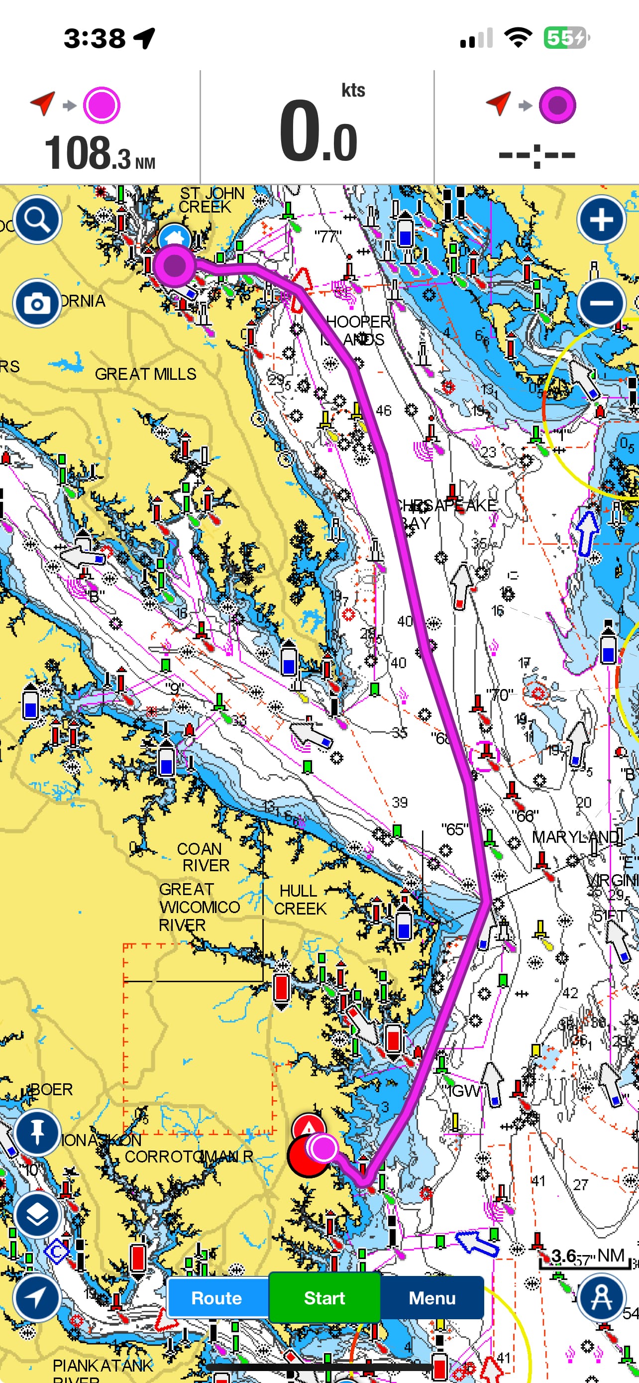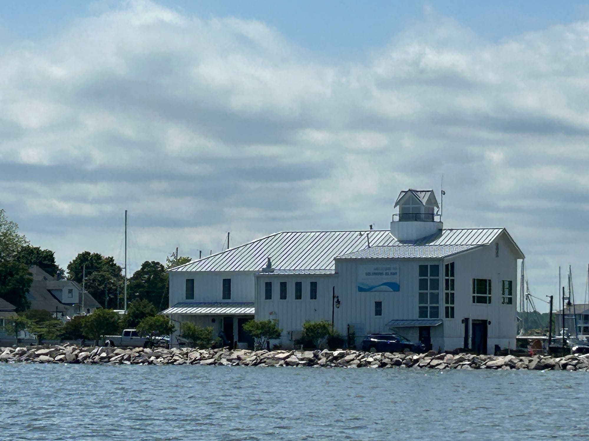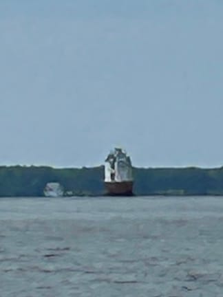 Although the weather looked a bit iffy we decided to leave the comfort of Kilmarnock and headed for the Solomons. We had heard several reports of needing near perfect weather as we would be crossing the mouth of the Potomac River. We were grateful as we began to pass the mouth of the River that the seas were calm at about 1’. There was no large wave action, strong currents or sea monsters getting in our way!🤪 🦑. Smooth traveling all day today.