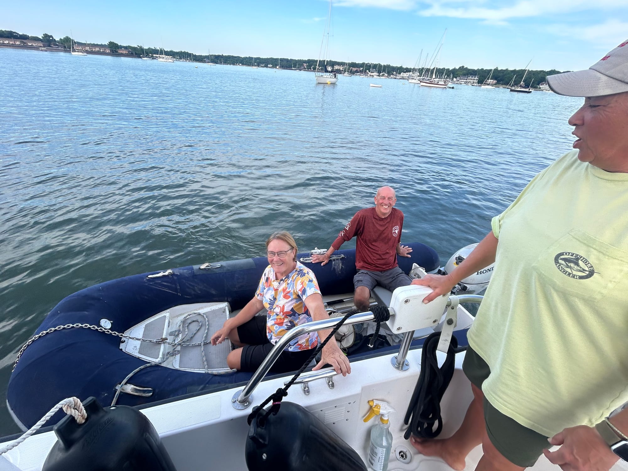 We arrived late afternoon at the mooring field in Port Washington. While there we hailed a passing dinghy-a couple from Scotland who have sailed around the world and have lived on their sailboat for 12+ years! They were happy to take a picture of us on our final looping day aboard Boat Time. Still amazed at the people we meet on this trip!