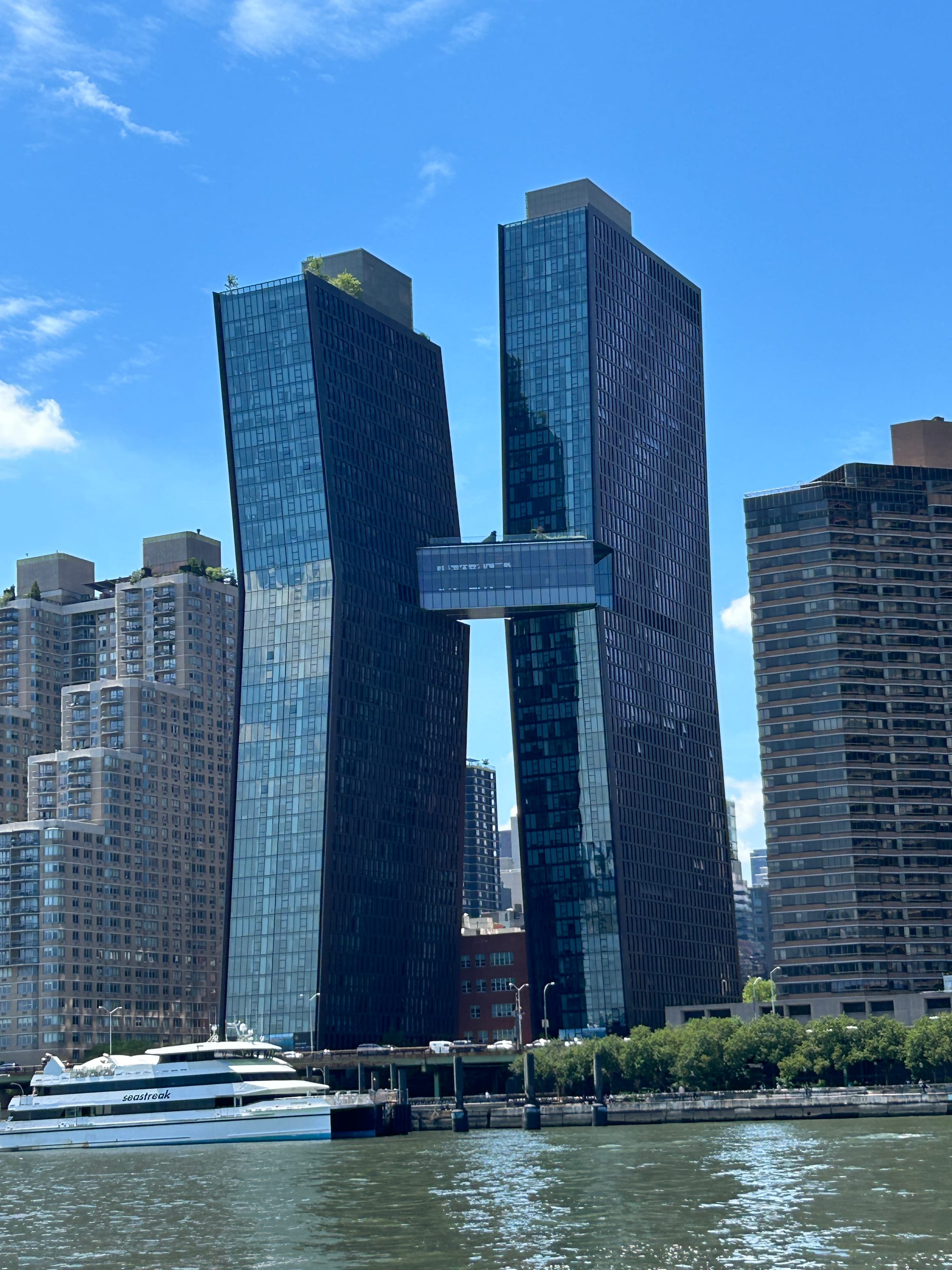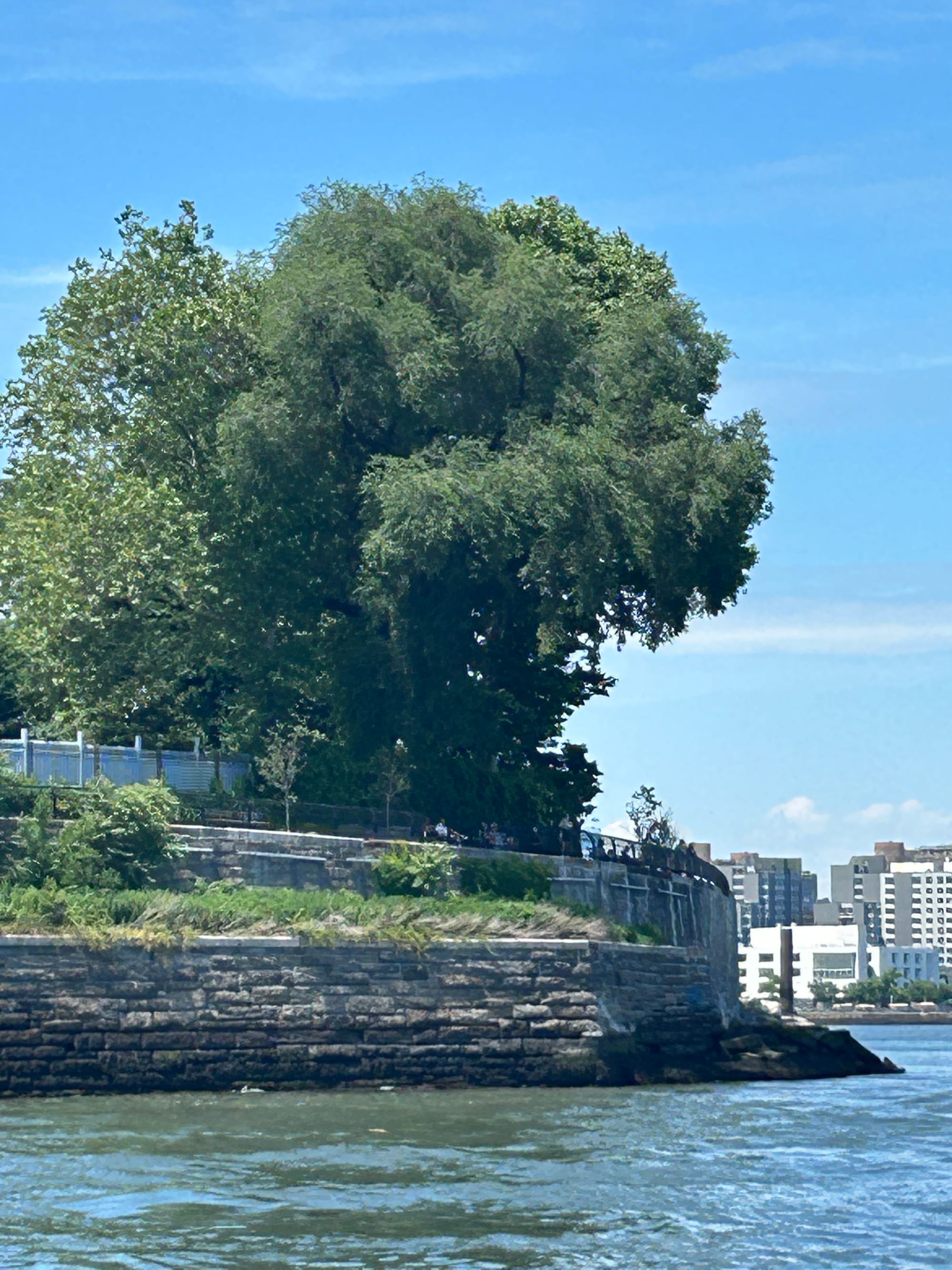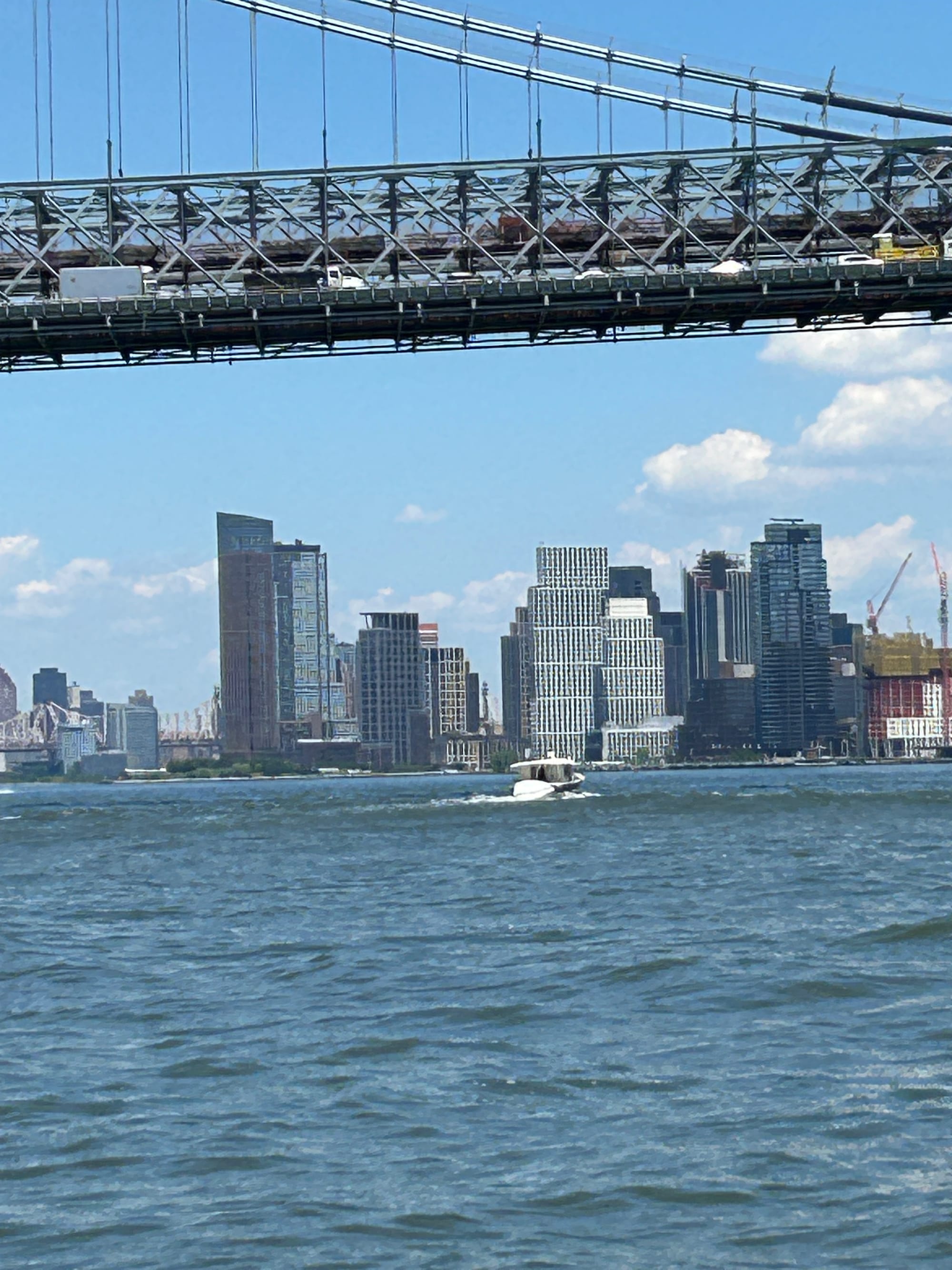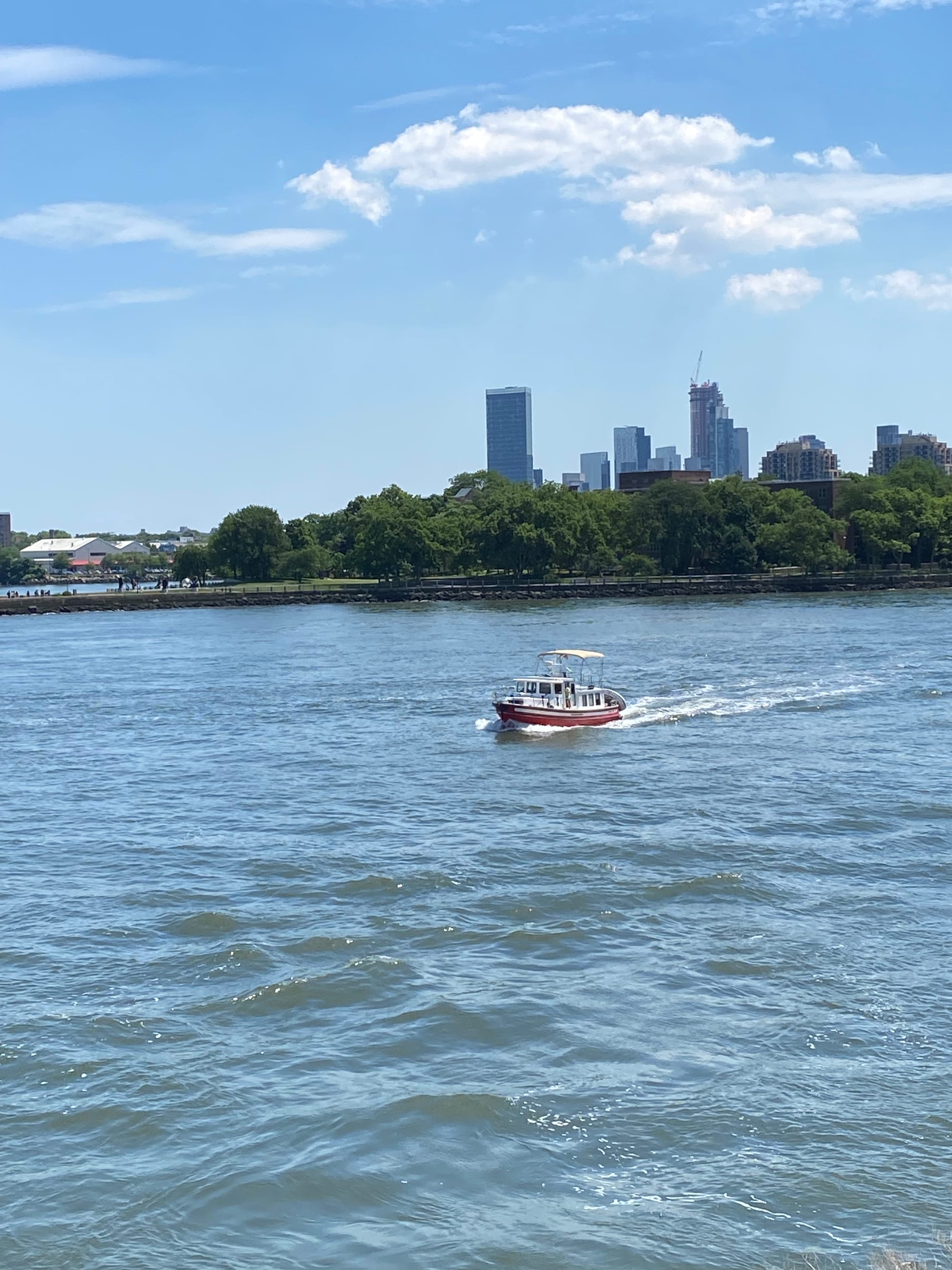 As a goof I texted my niece Caroline and asked if she was going to wave as we went by today. As many of you know I am directionally challenged and had no idea where she lives in NYC in relation to where we would be coming through the city. As luck would have it we passed Roosevelt Island on the side near where she lives. She was happy to oblige and as she waved frantically from shore she took a few pictures of us passing by.