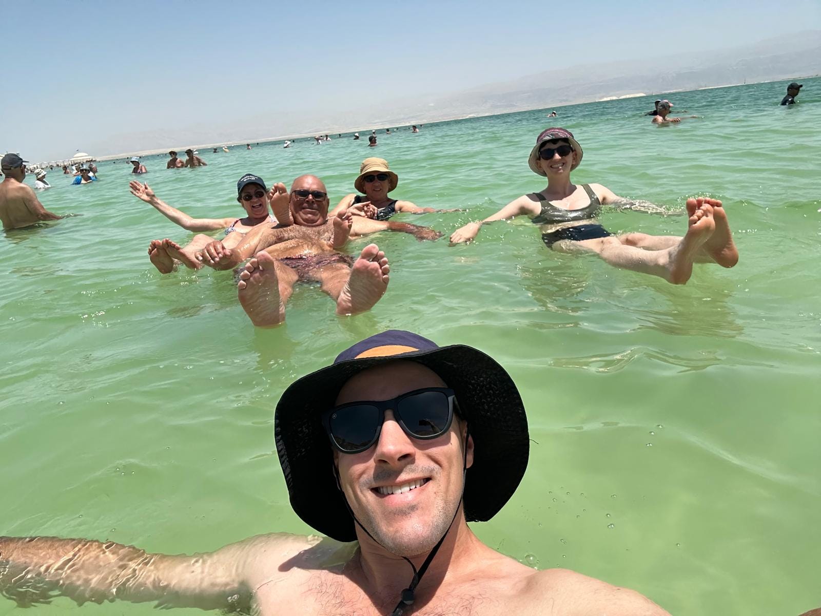 Following a brief picnic at Masada we took a short drive to the Dead Sea . Yes it was as beautiful as everyone says and a cool and refreshing end of our day-almost. We headed back to Jerusalem and had dinner at the Notre Dame hotel at their rooftop restaurant where we joined friends of Orly who gave us an overview of the city. A big THANKS to Orly for being our personal driver and guide today and for the next several days as we make our way across this beautiful country.