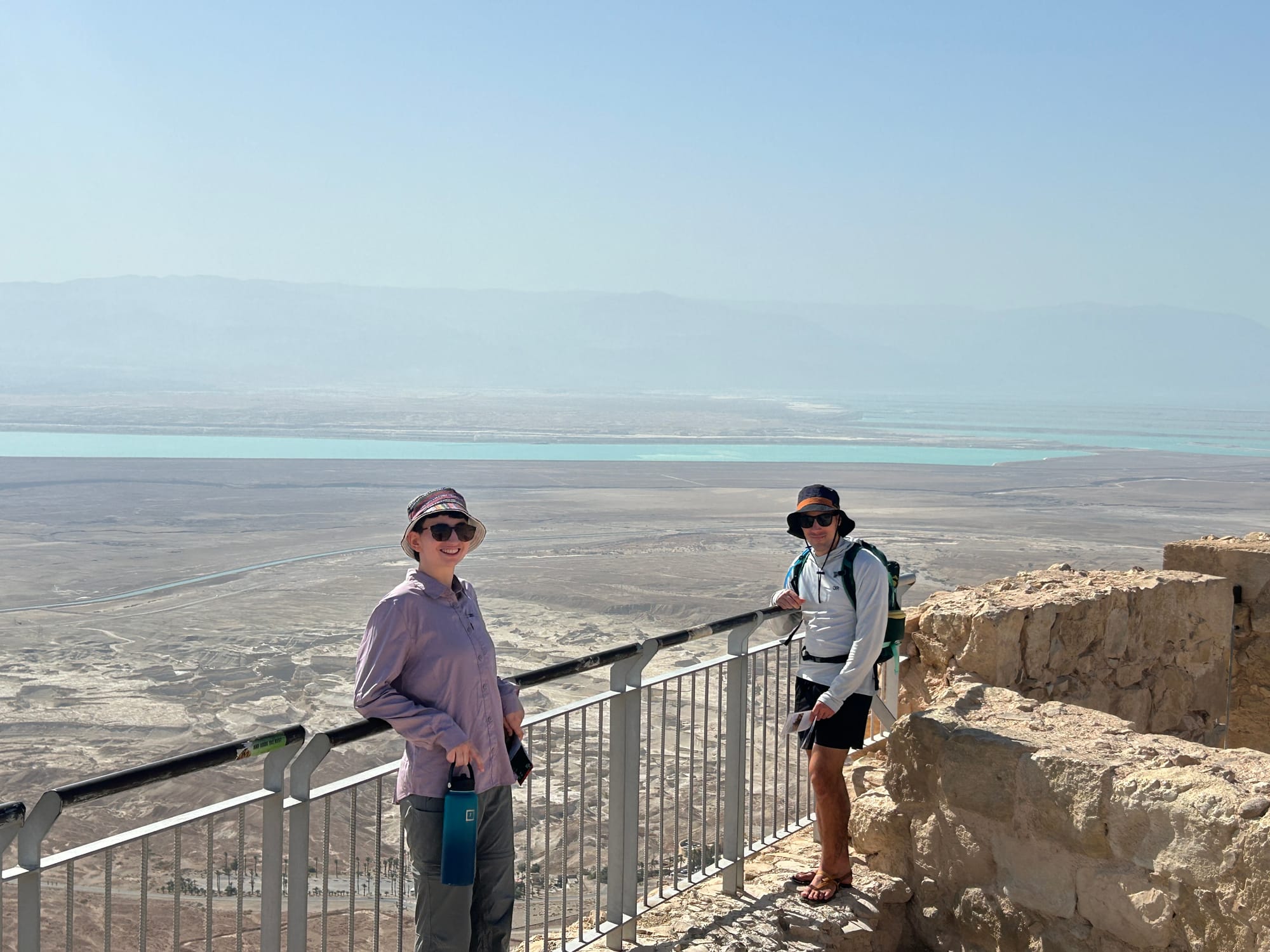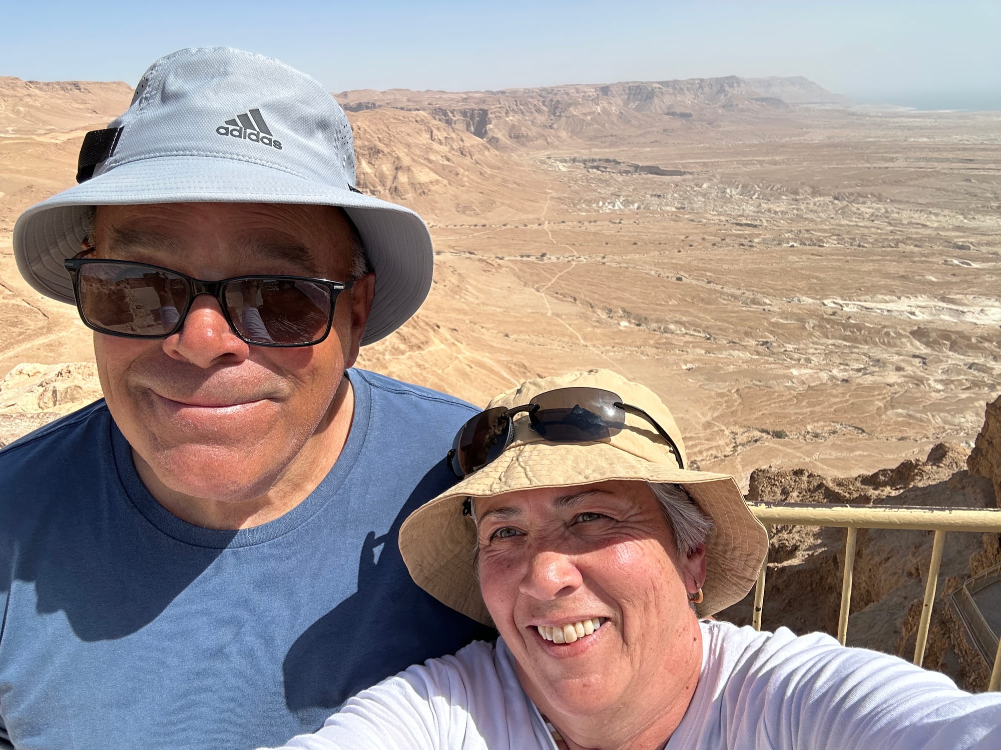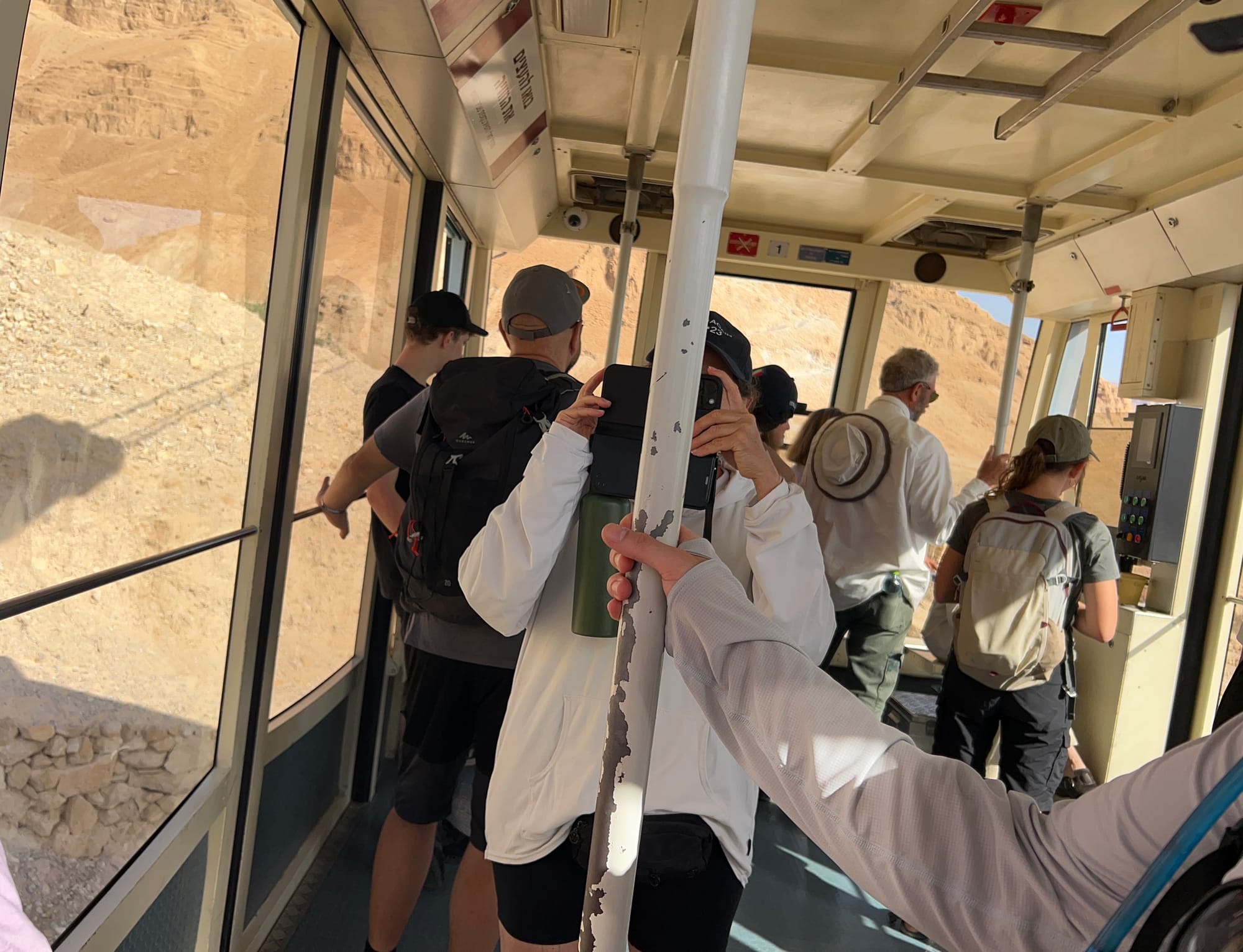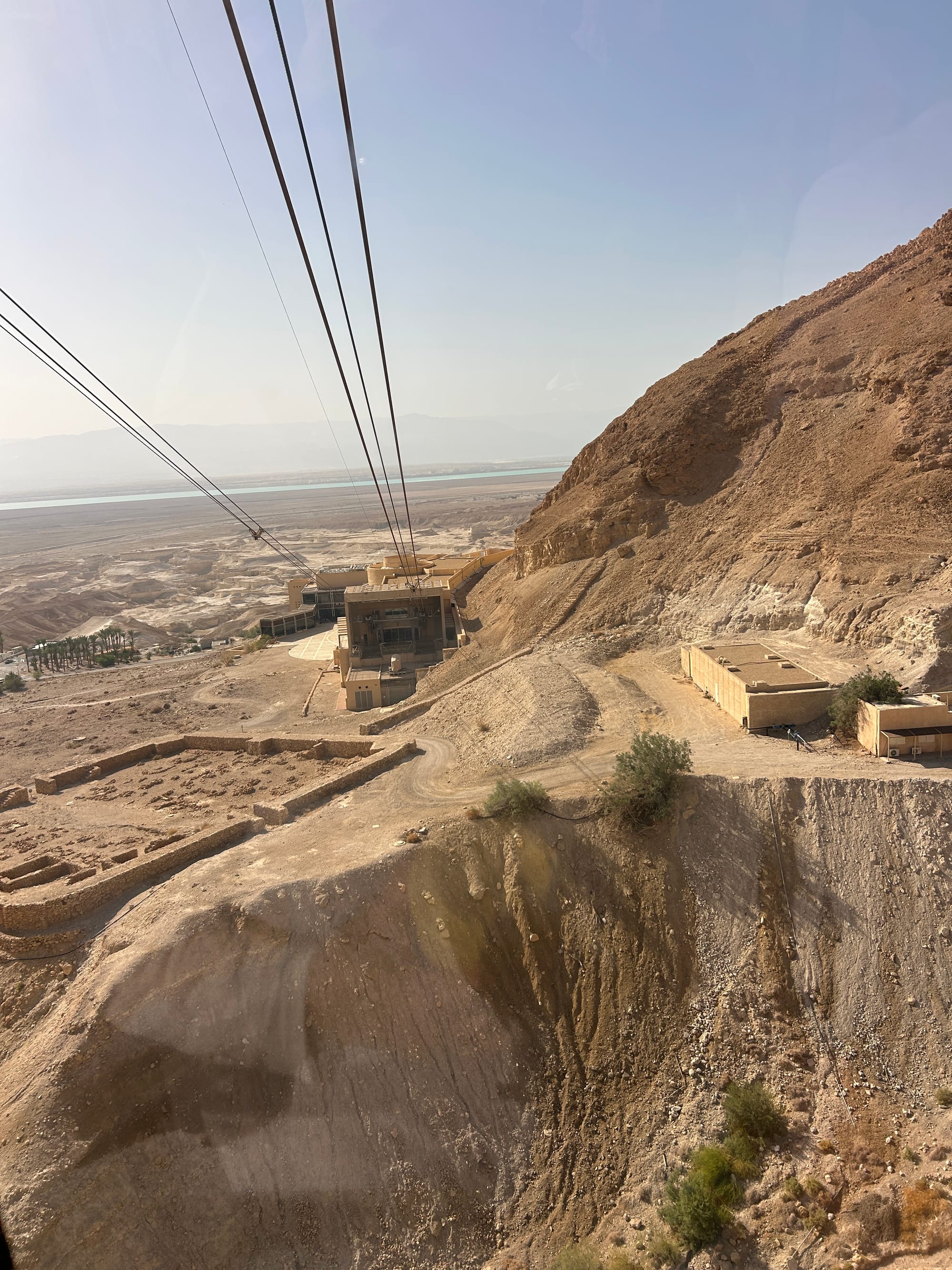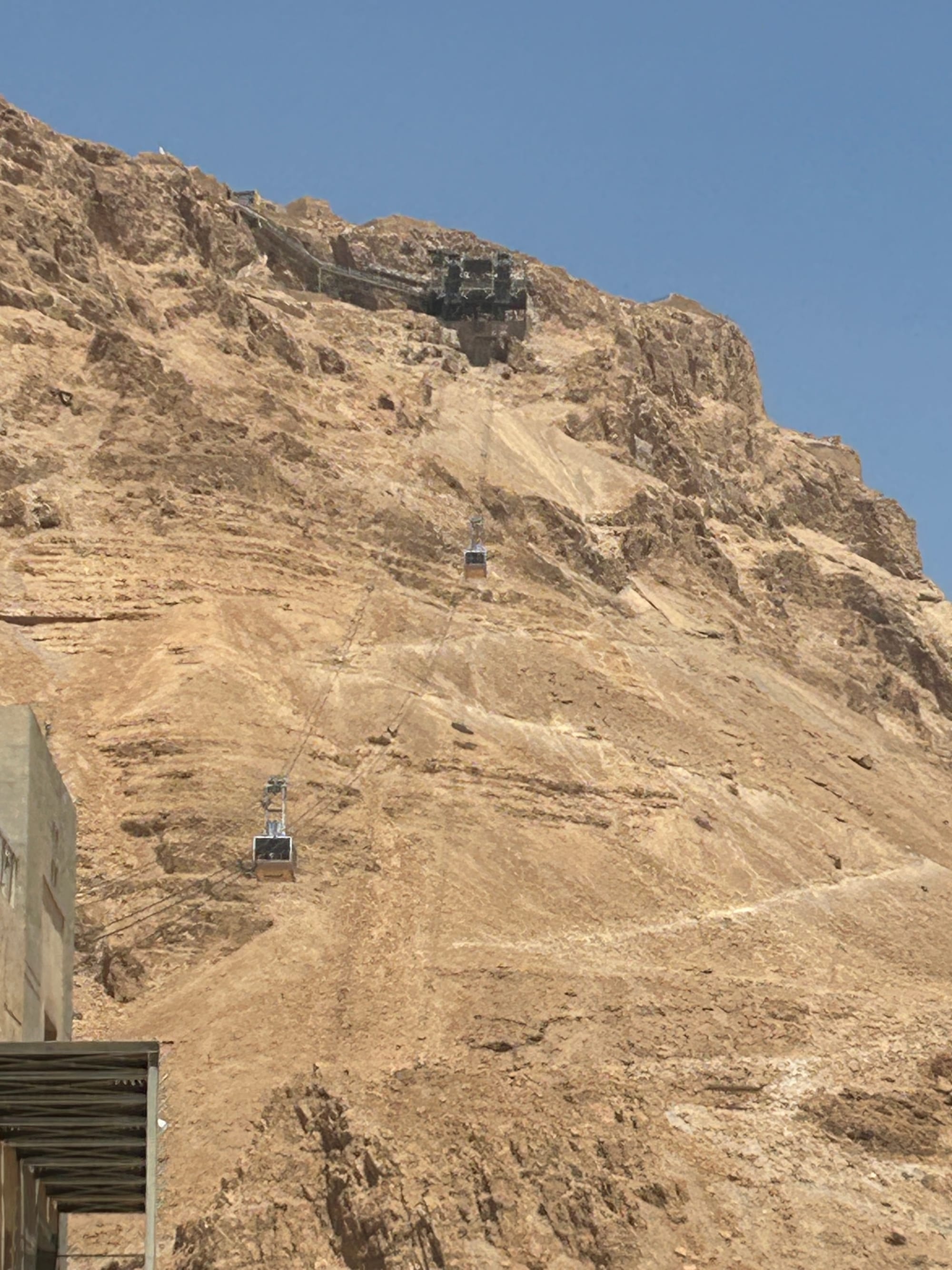 Today was a first of many experiences for me driving through the desert on our way to Masada National Park. First camel, first ibex and first time in a desert. We thankfully arrived early and took the cable car to the top of the park as it was a very hot day into the lower 90’s. This fortress was constructed by King Herod and was the last stronghold of the Jewish Freedom Fighters Ian’s was taken over by the Roman Empire. Much of it was preserved including some of the original frescoes.