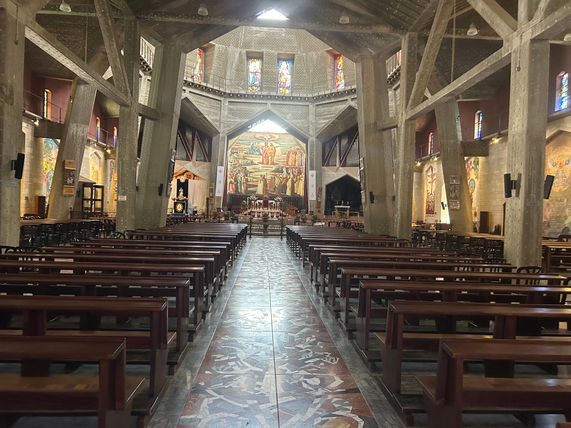 This morning Dan and I took a brief walk through the ramparts of the city and the market place. The ramparts walk was challenging having many twist and turns as well as slippery stairs although worth it for the views. We are leaving early because today is Jerusalem day and they were many demonstrations and parades occurring in the city. Adam, Orly, Dan and I left early to head to Nazareth to visit the Church of the Annunciation. Gal, having school, will meet up with us tonight wherever we land.