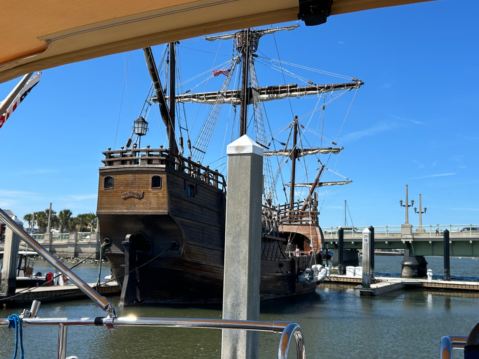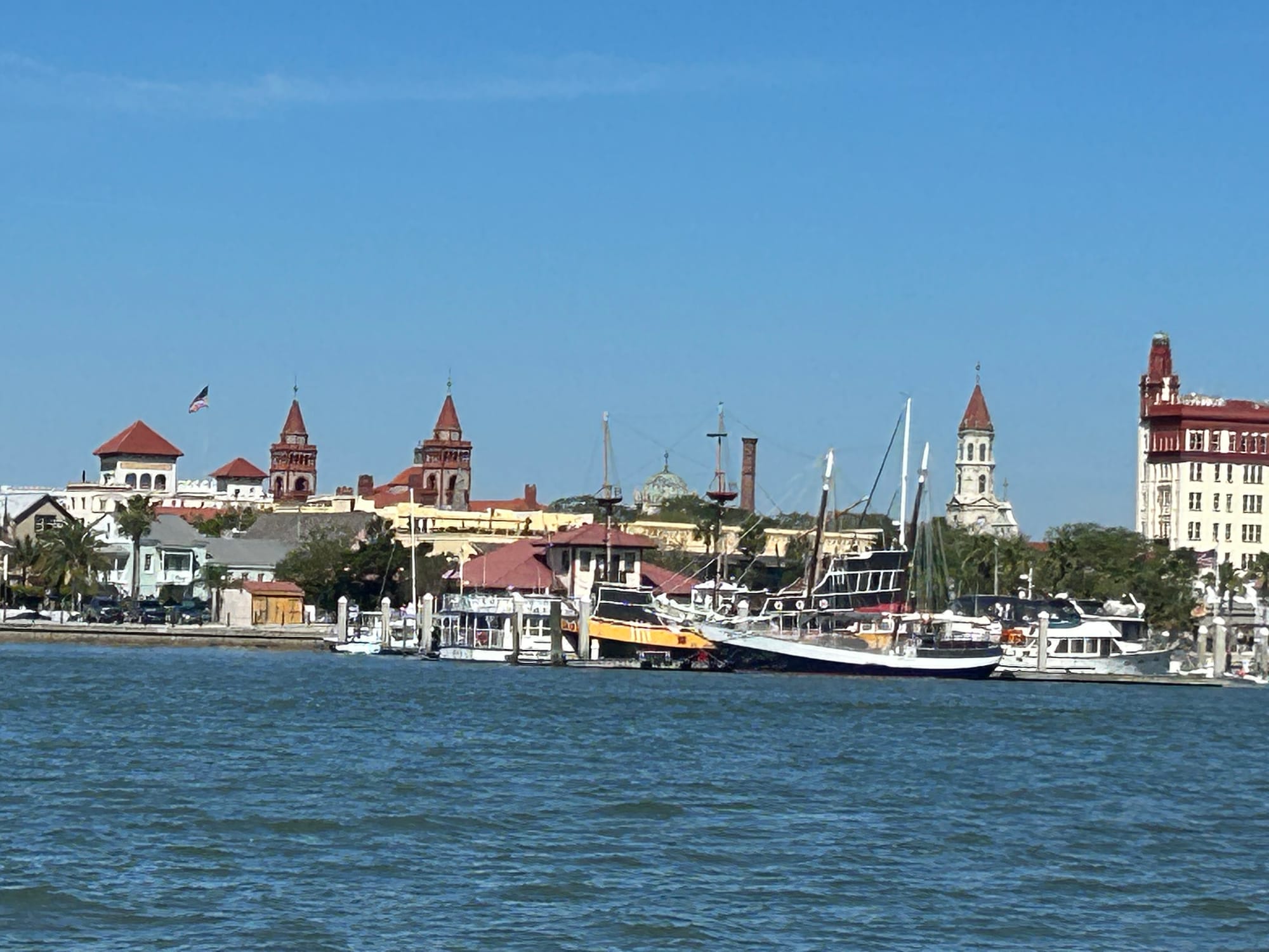 Headed to St. Augustine today, another short trip. We spent 2 days here, one in the marina and one on a mooring. St. Augustine is the oldest city in the US having several cobblestone streets and Spanish colonial buildings. Of course we spent sometime at the distillery and roamed the streets stopping from time to time at an interesting store or museum. Although we were here during the total solar eclipse it was barely noticeable. I am sure that friends and family in the northeast had a much better experience.