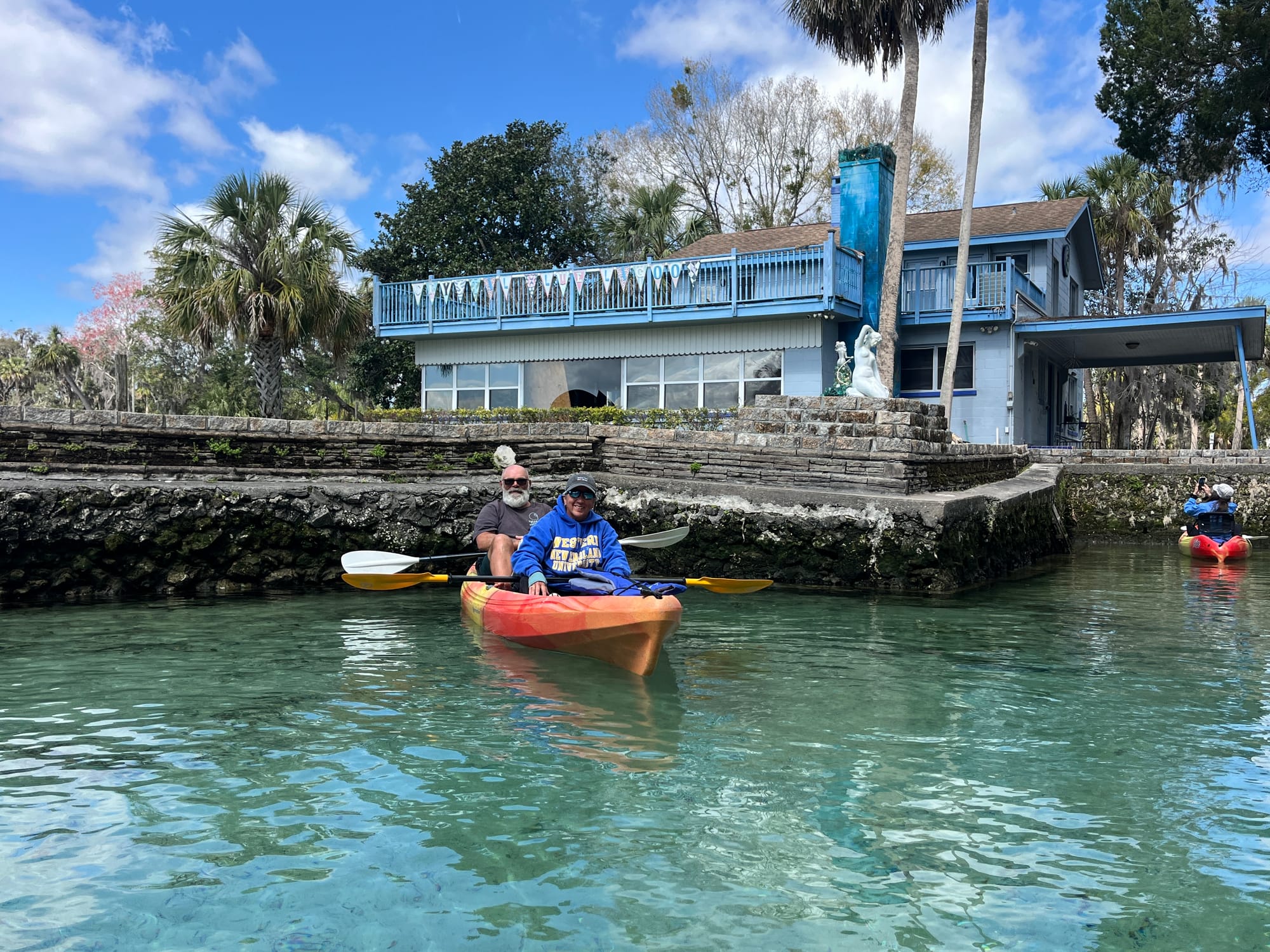As we meandered our way up the west coast of Florida we stopped at Gulf Coast RV Resort in Inglis, FL. We visited this area while on our boating trip last year and were unable to spend much time here due to the weather. The area is known for its fresh water springs and warm water bays where manatees come to spend the winter. The first day we enjoyed a kayak tour meandering through the natural springs and were able to see hundreds of manatees. The area has recovered somewhat from the most recent hurricanes with most area businesses up and running.