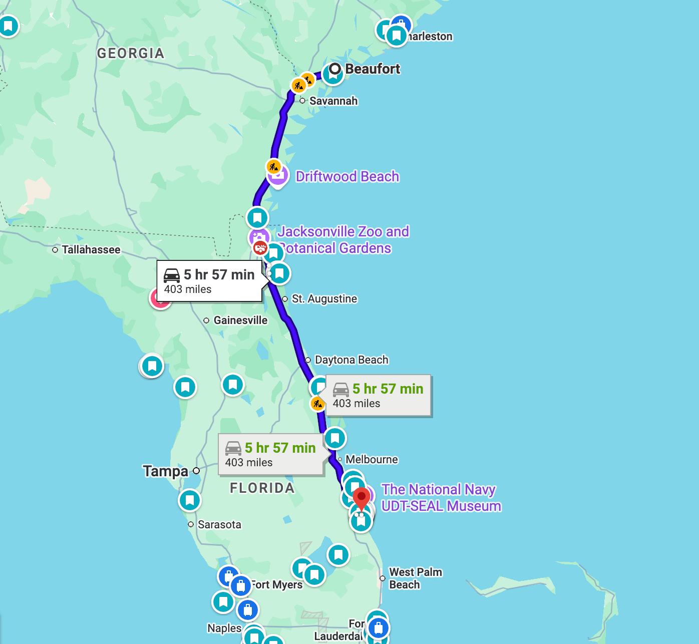 After several days of travel we stopped for a few days to visit friends in Ft. Pierce. We enjoy this area for the friends, several beautiful beaches, and limited traffic. The weather was exceptionally warm this year and we enjoyed the beaches and some down time at The Roadrunner Resort a short drive to friends in the area.