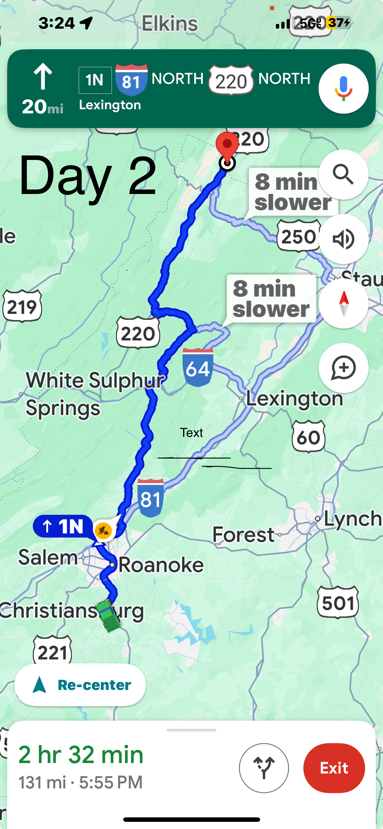 Still feeling cold we decided on another long day to Franklin County, VA. Here we stayed at Franklin County Distillery. Food wasn't quite as good, nor was the view, but better than Walmart parking lot.