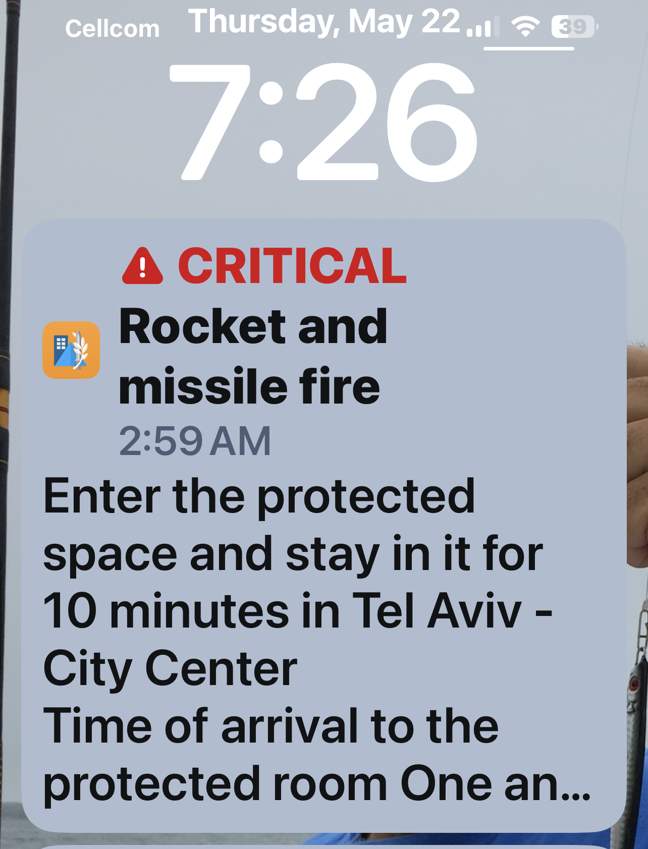The day would not have been complete without meeting the neighbors in the stairwell around 3 a.m. as the sirens blared letting us know it was time to shelter. An exciting end to our long first day here.